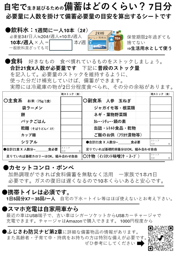 各ご家庭の今のストックを見て、足りているのか、不足しているのか?何をどのくらい追加すれば足りるのか?をご自分で知ることができるシートが次にご紹介するチラシ裏面です。