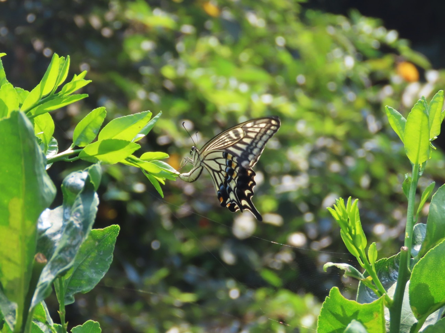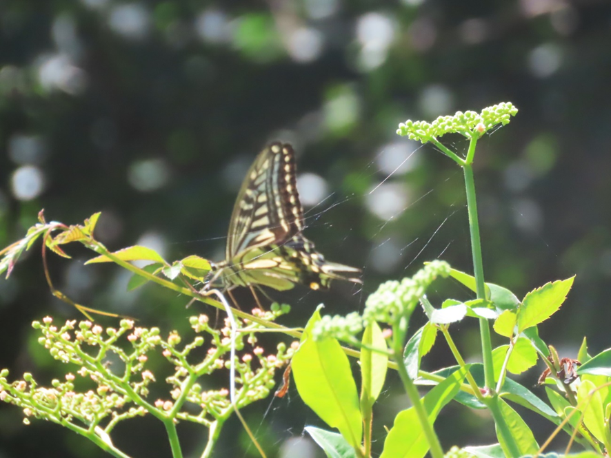8月25日にアオスジアゲハ・イチモンジセセリ・アゲハ・クロマダラソテツシジミ・ヒメアカタテハ・モンキアゲハ・クロアゲハ・コミスジ・ナガサキアゲハ・チャバネセセリ・キマダラセセリ・ヒカゲチョウ・ジャコウアゲハ・アゲハ卵・アゲハ幼虫・モンキアゲハ幼虫を観察しました。