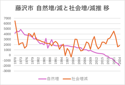 2018年以降くらいから社会増は安定的に増加して、藤沢市は社会増が多い街として知られるようになりました。