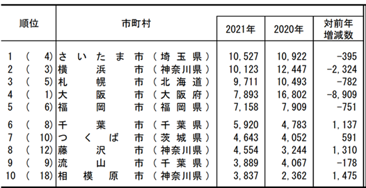 特に2021年には全国の市町村の中で8位となり、川崎市をも上回る社会増(転入超過者数)となりました。