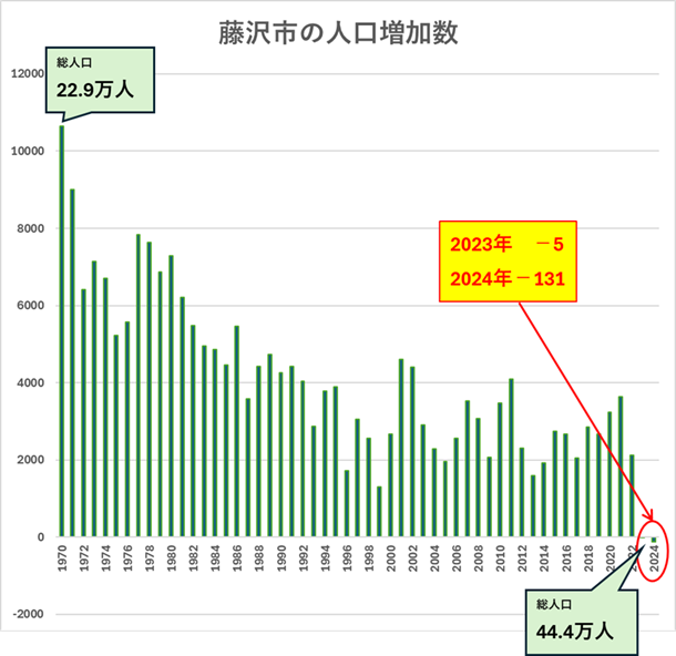 〇実は藤沢市は2023年、2024年と総人口は減少している