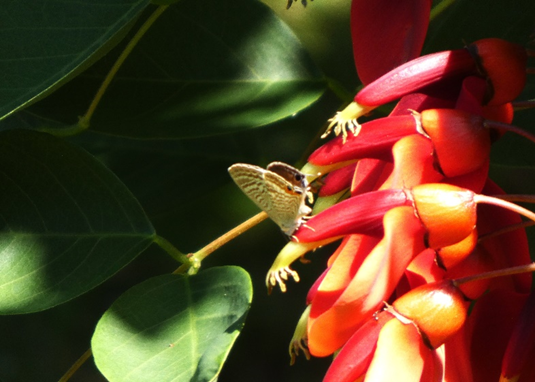 アメリカデイゴで吸蜜しているウラナミシジミです