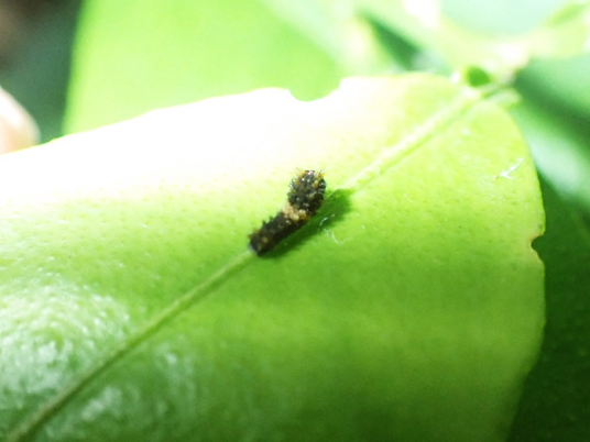 孵化したばかりのアゲハの幼虫です