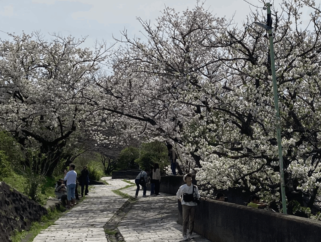 道の両側には桜が植えられ、その石畳は当時東京市街から姿を消した都電の石畳を移設したと伝えられています。50年以上たった今も桜は美しく咲き、その時期は石畳を花びらがピンク色に敷き詰めます。私もここで育った者ですが、当時この場所の名前は特に聞いたこともなく、でも住民は「あの富士山の見える景色の良い坂道」でわかっていたというのが実感です。