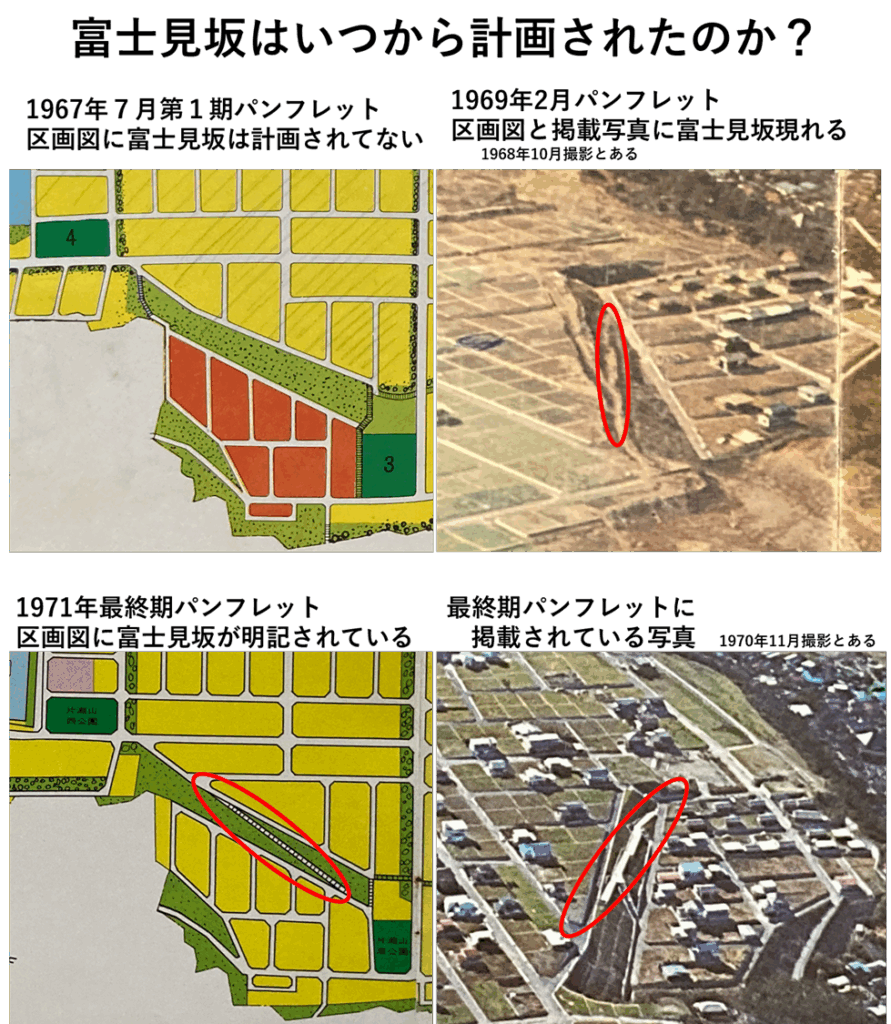 片瀬山第1期のパンフレットには未計画なのですが、翌年には実際の工事写真に登場していますので、造成の比較的早い時期に追加されたらしいことがわかります。