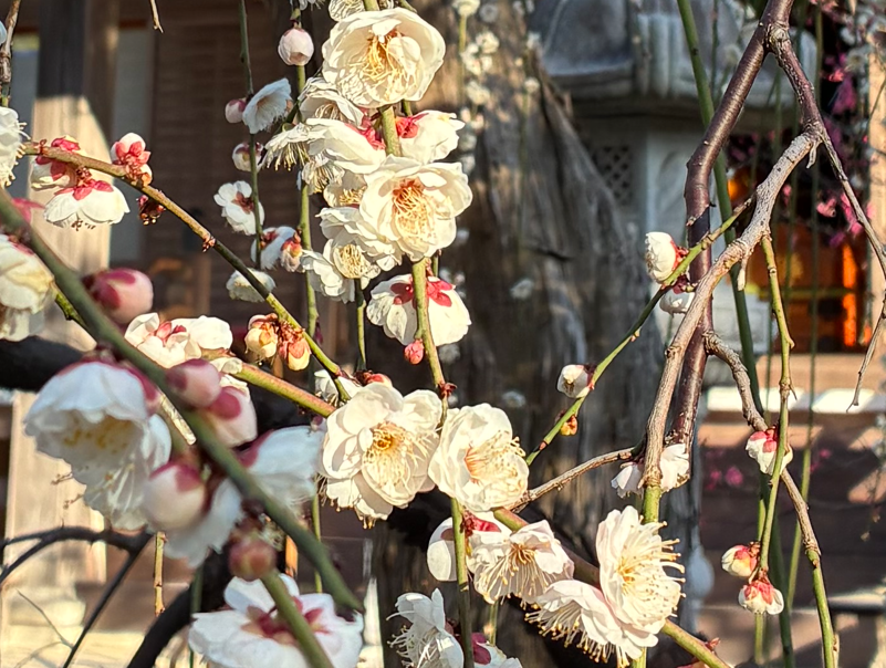 山門前の白梅紅梅がきれいです