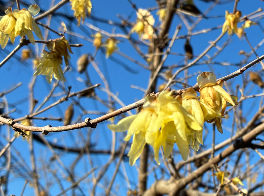そして蝋梅がきれいに咲いていました。これは青空に映えます。