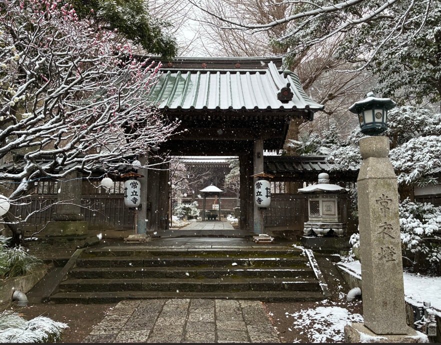 雪の中の常立寺山門