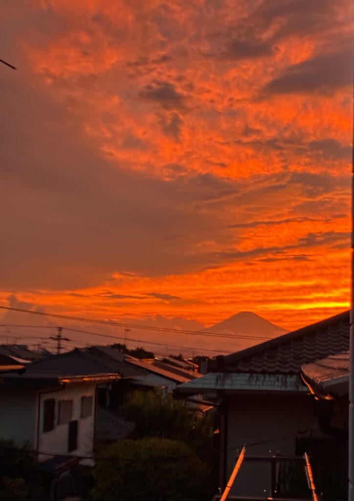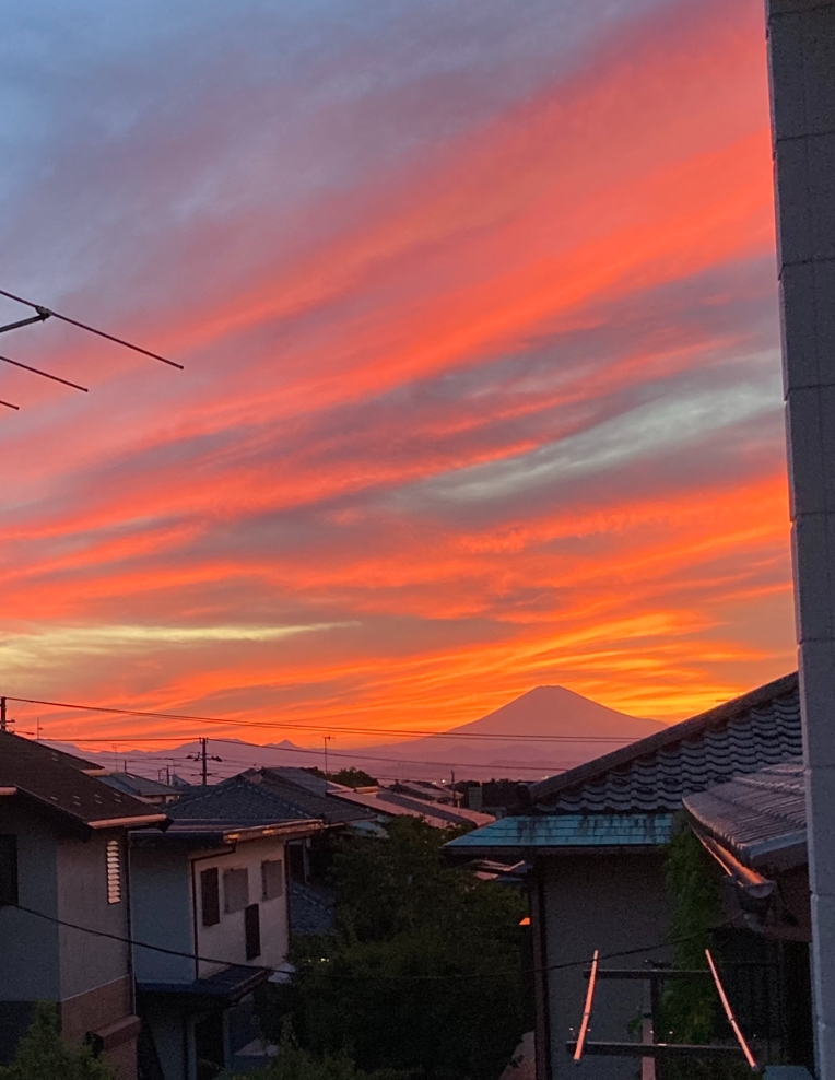 昨日10月8日水曜日の夕方、素晴らしい夕焼けの中、富士山がくっきり見える という奇跡的な写真を1丁目のKさんが撮影してくれました。